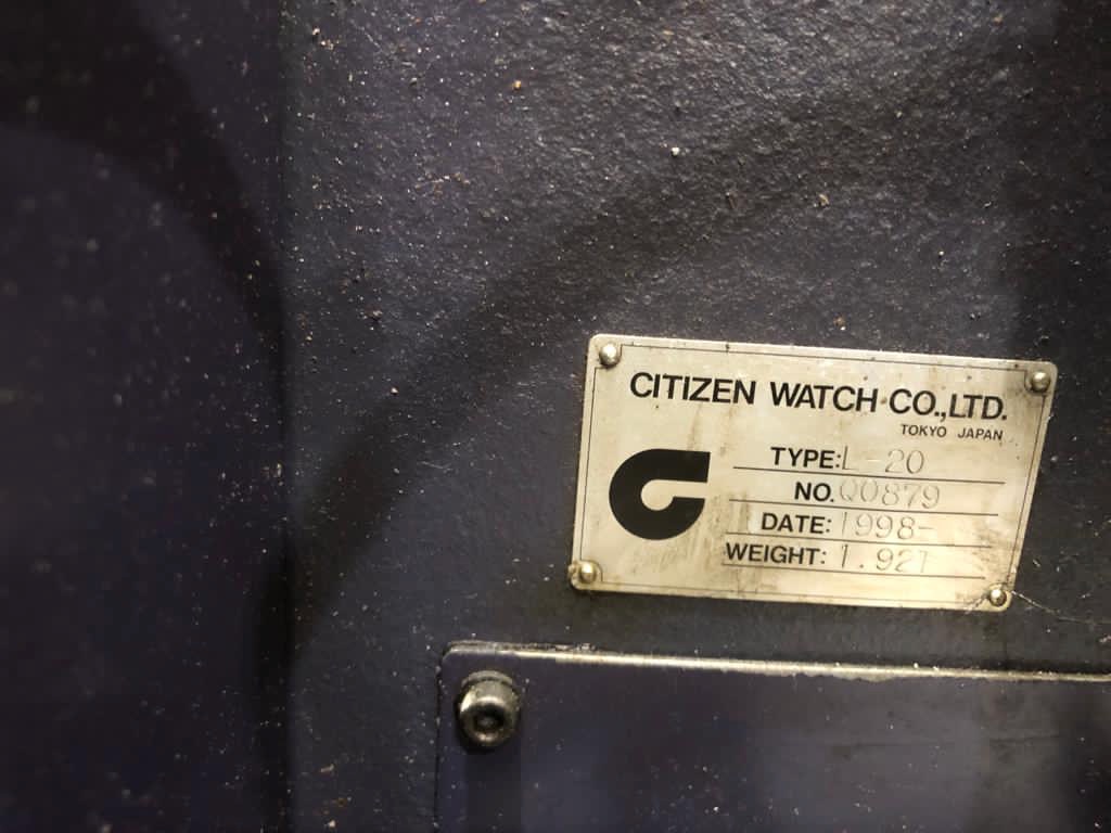 Lot 1 - Citizen L20 Sliding Head Lathe with Barfeed (1998)