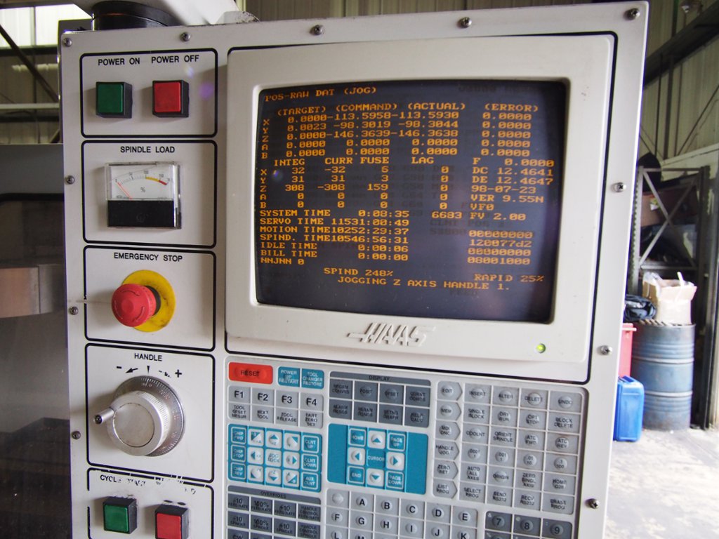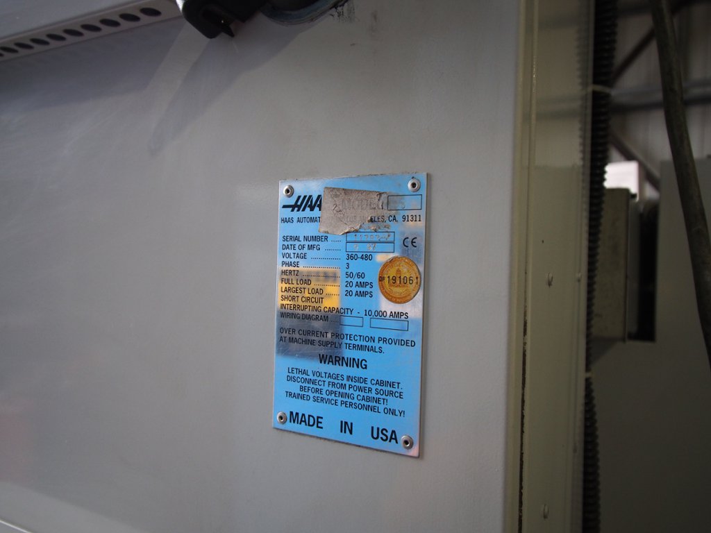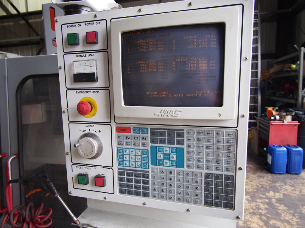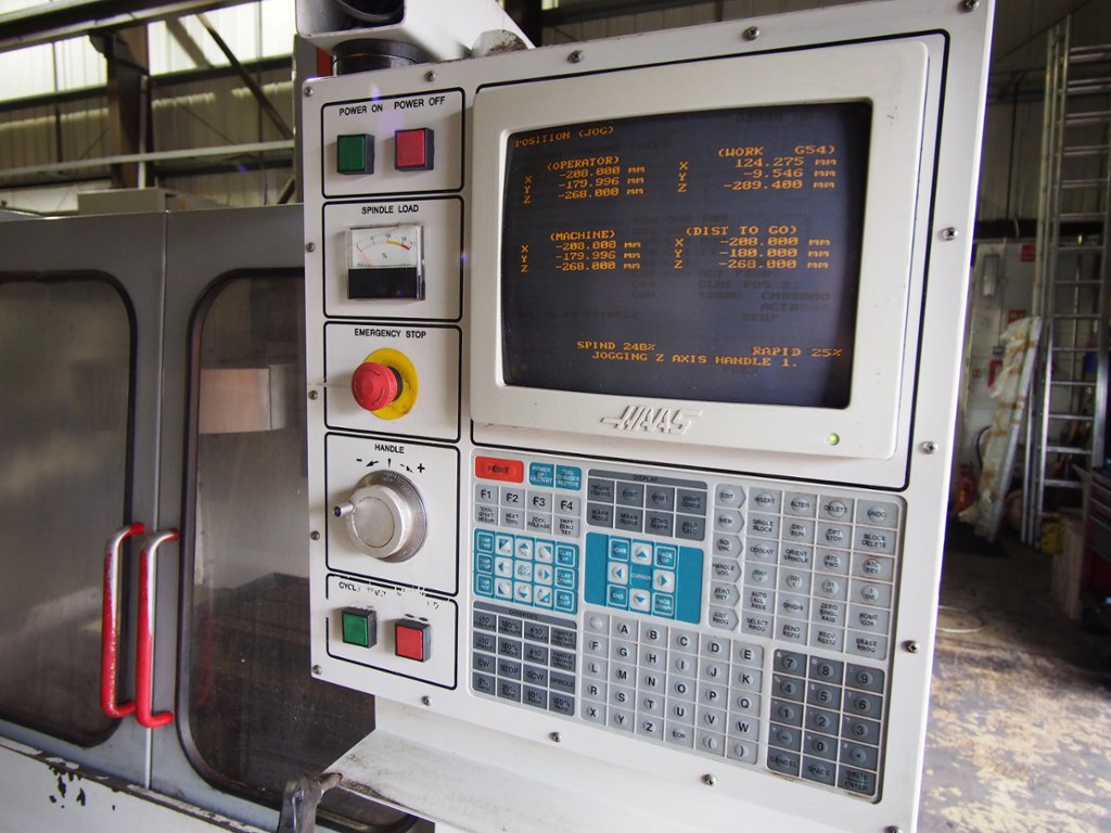 Traverses X Y Z: 508 x 406 x 508mm, Table 660 x 356mm, Spindle taper BT40, 20Hp Spindle Motor, Spindle Speed 7500rpm, HAAS Control, 20 Station ATC, Programmable Coolant, Swarf Auger, Low Volt light, weight 3,175 kg.