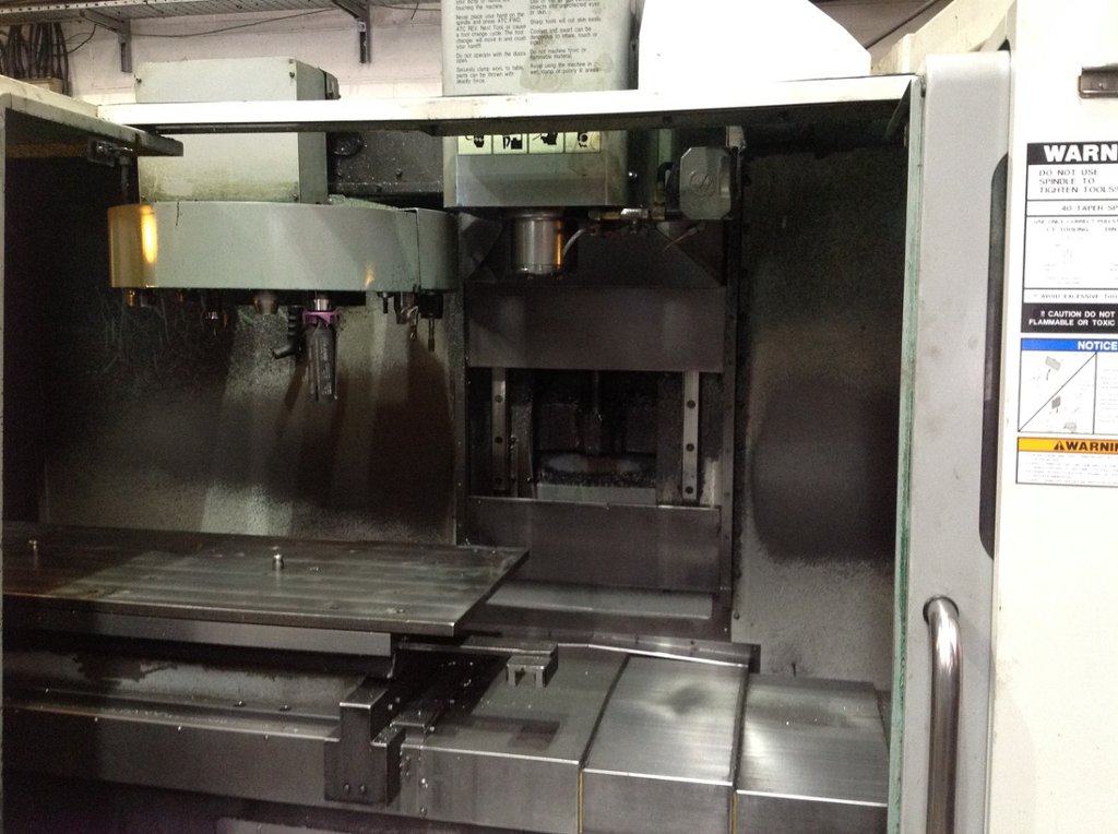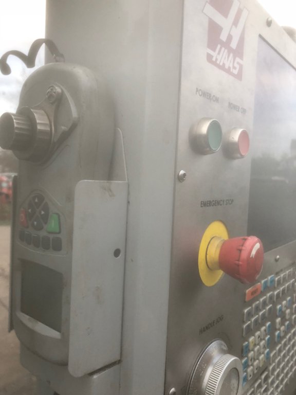 Traverses X Y Z: 1270 x 508 x 635mm, Spindle nose to Table: 102 – 737mm, Table 1324 x 457mm,2 speed gearbox Spindle speed 7500rpm, Spindle taper BT40, Spindle Motor 20Hp, HAAS Control with MPG, 20 Station ATC, Programmable Coolant nozzle, Through Spindle Coolant, Low Volt light, Chip Conveyor, Y axis front guard incomplete, no tooling included, machine unchecked