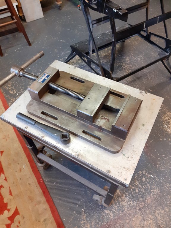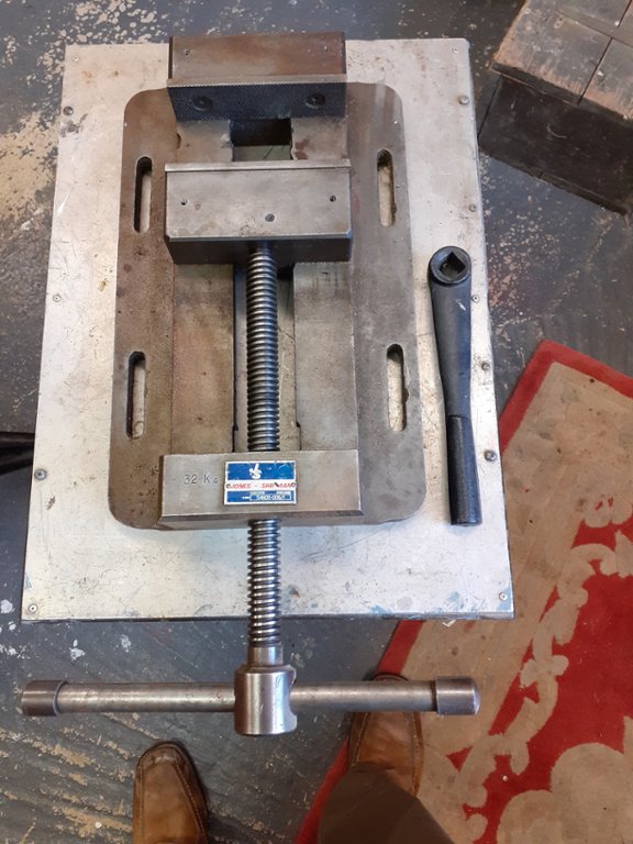 150mm jaw width, 45mm jaw height, 250 mm jaw opening, Base dimensions 266 mm wide X 420 mm long, weight 32 Kg good condition