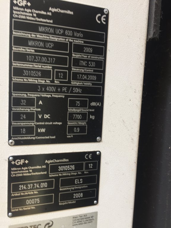 Lot 2 - Mikron UCP 600 Vario 5 Axis Machining Centre (2009)