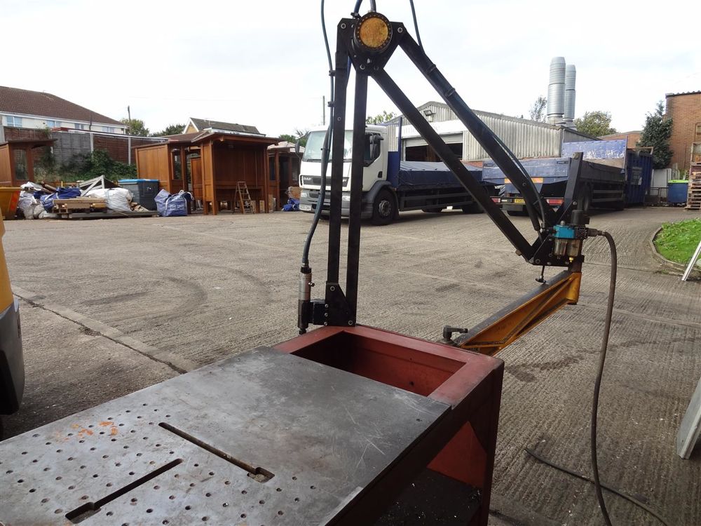 S & L Maskin Type 16002 Pneumatic tapping arm on steel table