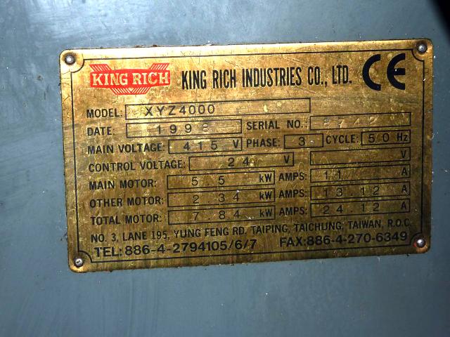 XYZ DPM 4000 3 Axis Bed Type CNC Milling Machine Year 1998