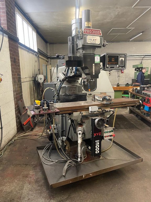 Table size - 305 x 1220mm/305 x 1272mm, T Slots (3) - 15.9mm, Longitudinal travel (X Axis) - 762mm/863mm, Cross travel - 406mm, Knee vertical travel - 406mm, Quill travel - 127mm, Quill diameter - 105mm, Quill feeds - .038mm. 0.76 .152mm, Spindle motor - 5HP, Spindle speeds - Low 70-460RPM High 460-3600RPM (60Hz), Spindle taper - ISO 40, Ram travel - 450mm, Spindle nose to top of table - 50-457mm, Overarm swivel on turret - 360deg, Head tilt front to back - 45deg-0-45deg, Head tilt left to right - 90deg-0-90deg, Max throat depth - 610mm, Max table load - 550kg