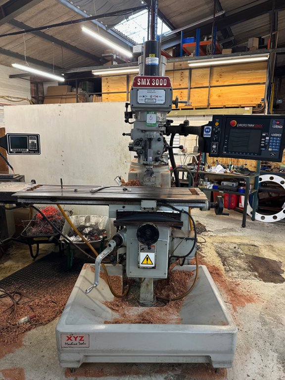 Table 1473 x 305mm, Traverses XYZ: 1000 x 410mm x 400mm (knee), quill travel 127mm, Spindle Taper ISO40, Power Drawbar, Spindle Motor 5HP, Spindle Speeds 70 - 3600rpm, Prototrak SMX 2 Axis CNC Control, Power drawbar, coolant